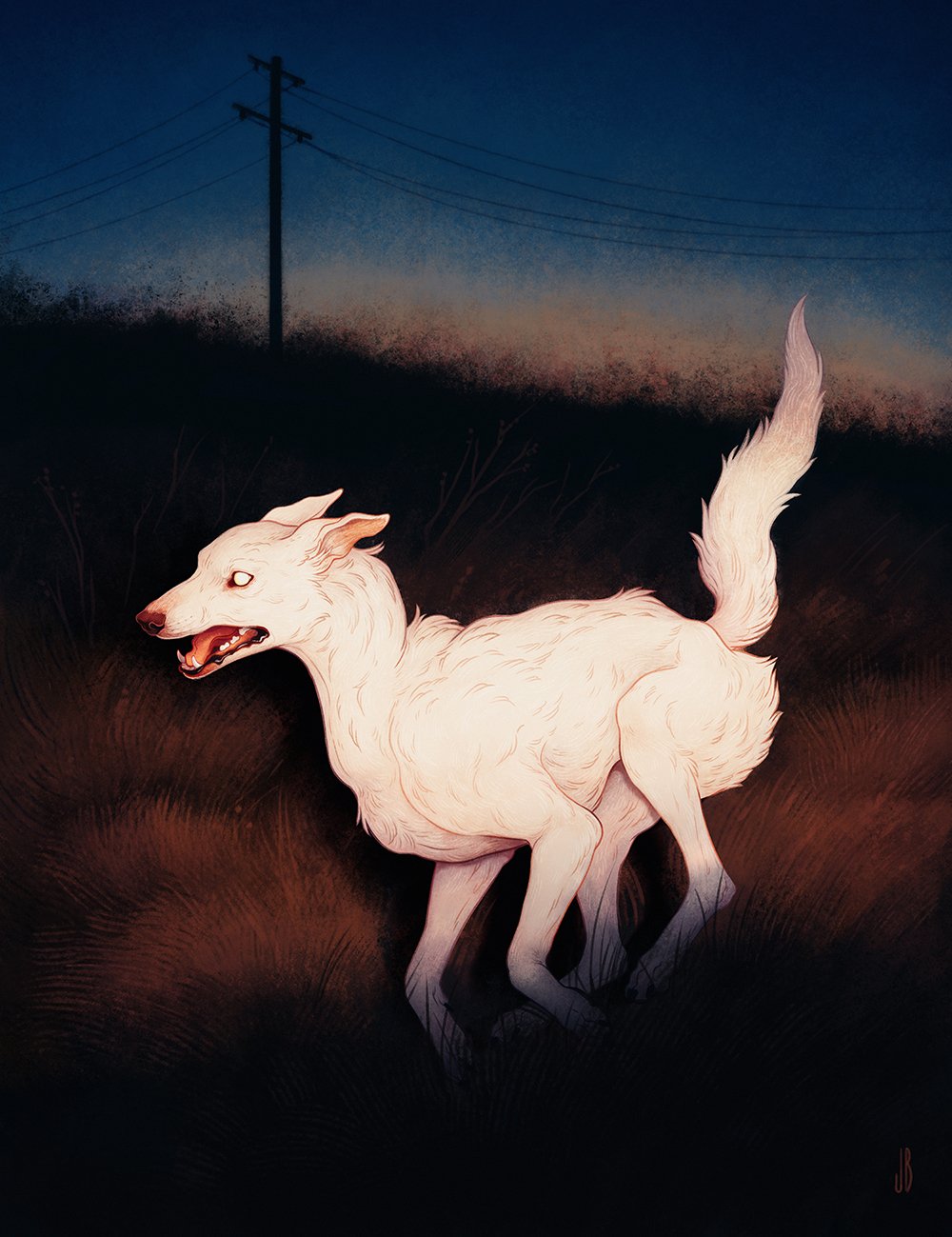 Visions on a night drive, or a lost love glimpsed in headlights. -- Art print on thick, archival matte paper.