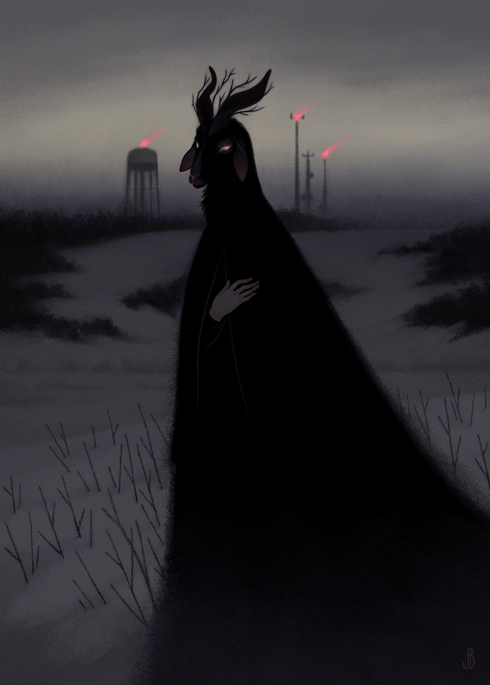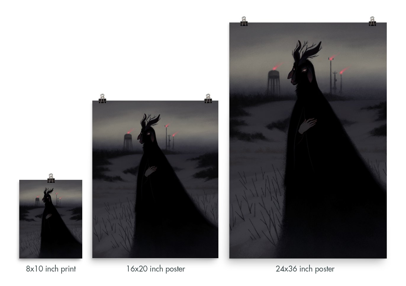 Every third night, at the witching hour, it crosses the field near the radio towers. -- Art print on thick, archival matte paper