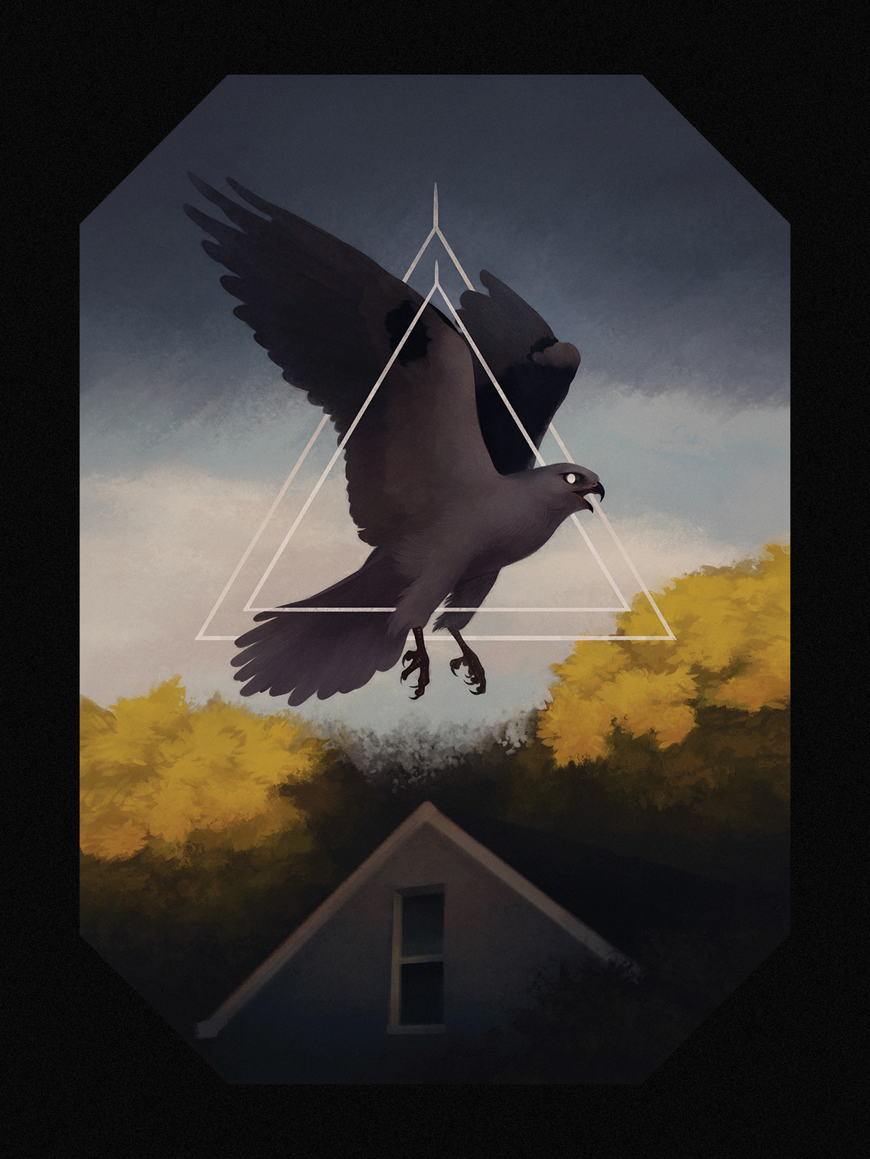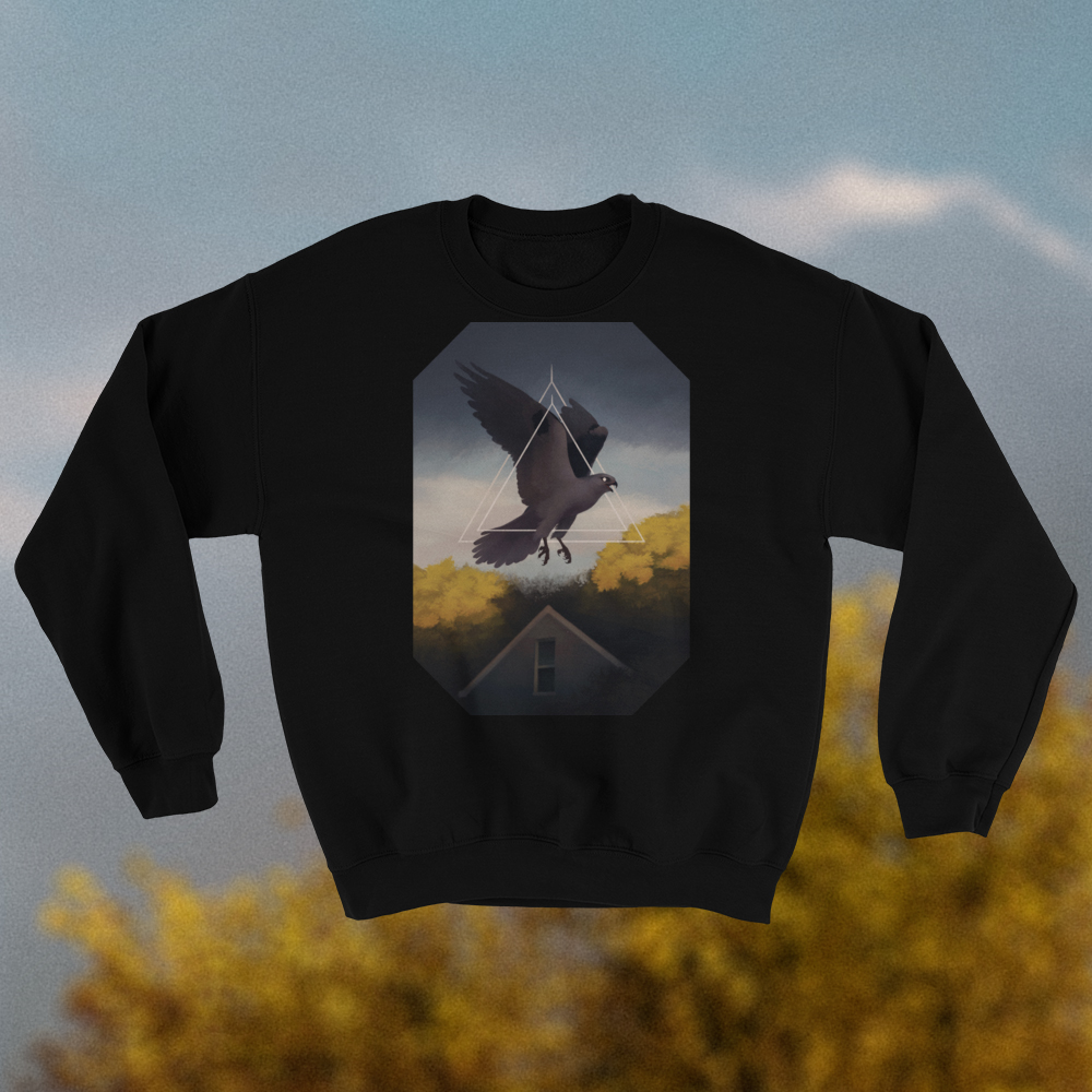 On strange wings that didn’t stir the air. -- Wearable art print on a warm pullover sweatshirt. 50/50 cotton-polyester.