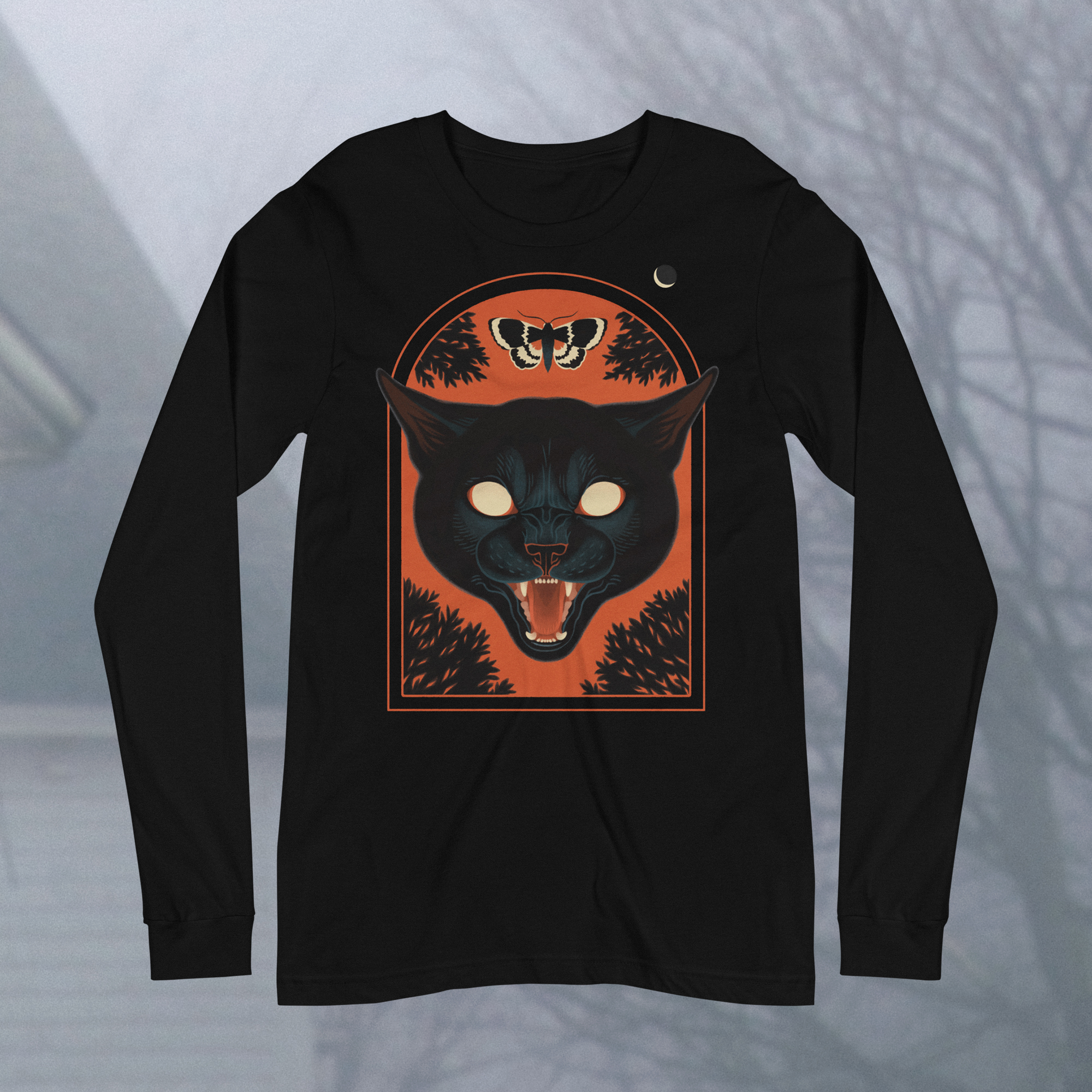 Look through the eye of the hunter, asleep. -- Wearable art print on a soft, long-sleeve t-shirt. 100% cotton.
