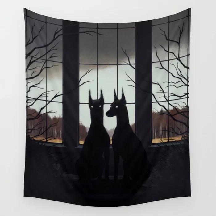 There is a house beyond the trees, where nothing stirs and nothing sleeps. -- Wall tapestry made from 100% lightweight polyester with sewn finish. Crisp, color-accurate print ♥