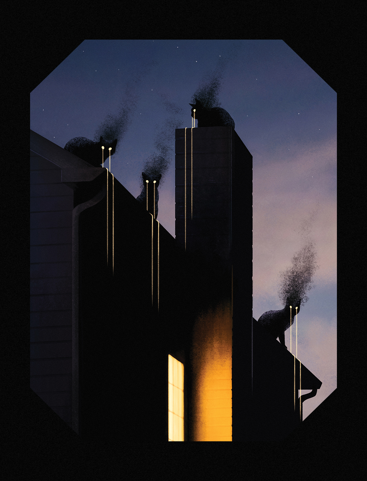 Strange omens gather at the end of the street. -- Wearable art print on a soft, long-sleeve t-shirt. 100% cotton.