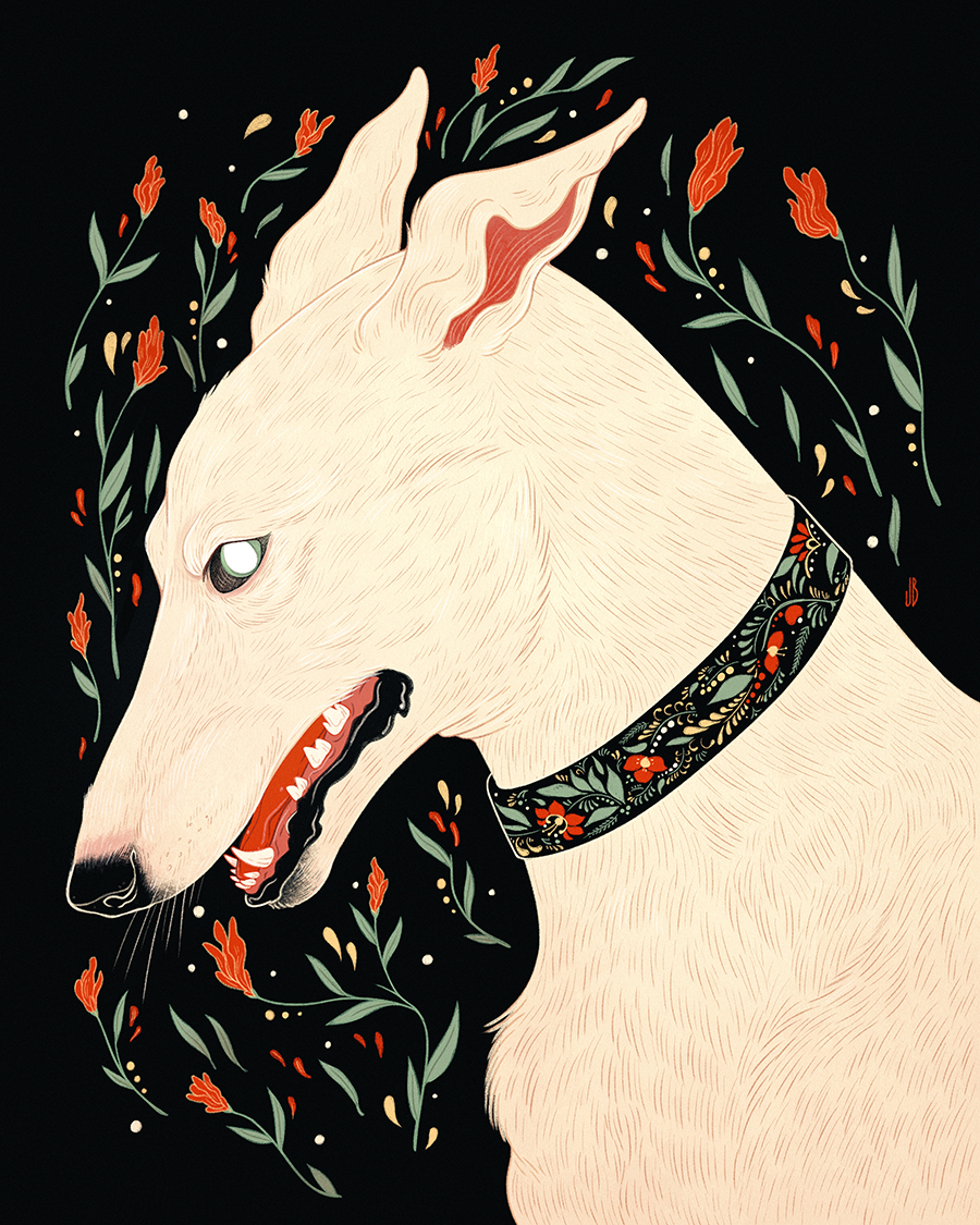 Winter is a lean white hound, who walks by night and makes no sound