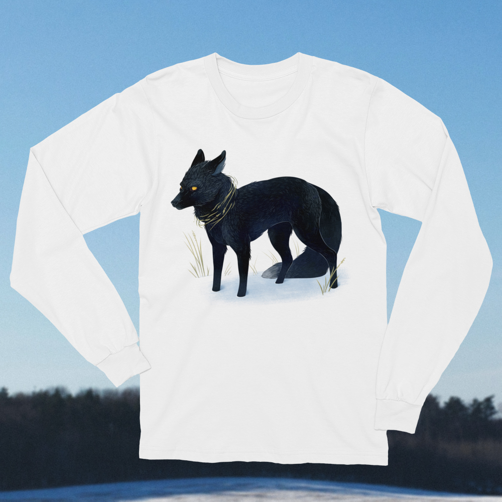 Tread soft over a sleeping world. -- Wearable art print on a soft, long-sleeve t-shirt. 100% cotton.