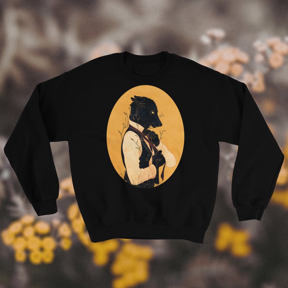 “Cruel,” he thought, “how stories go—with men as heroes, wolves as foes.” -- Wearable art print on a warm pullover sweatshirt. 50/50 cotton-polyester.