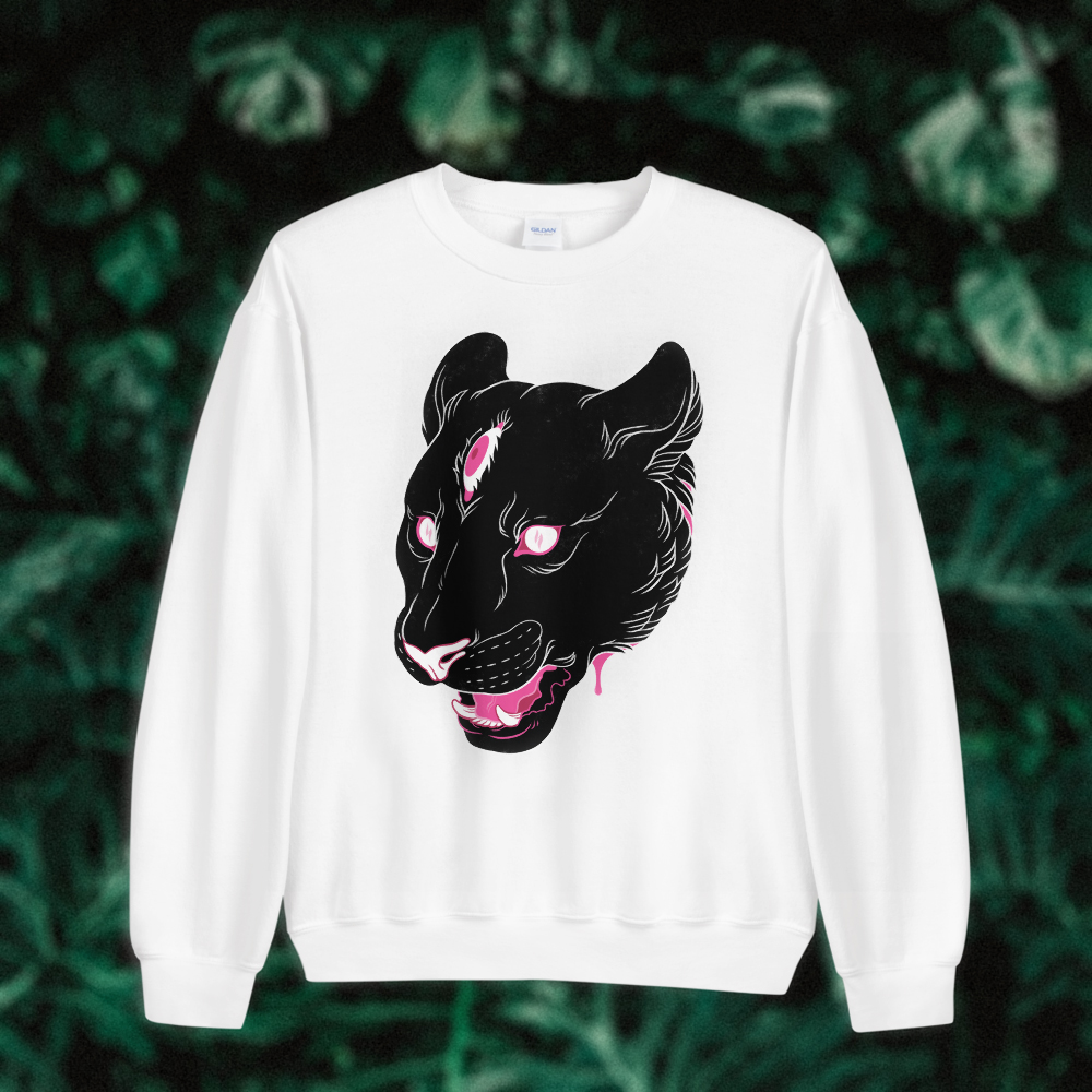 Caught in the flash of some terrible eye. -- Wearable art print on a warm pullover sweatshirt. 50/50 cotton-polyester.